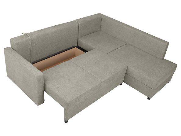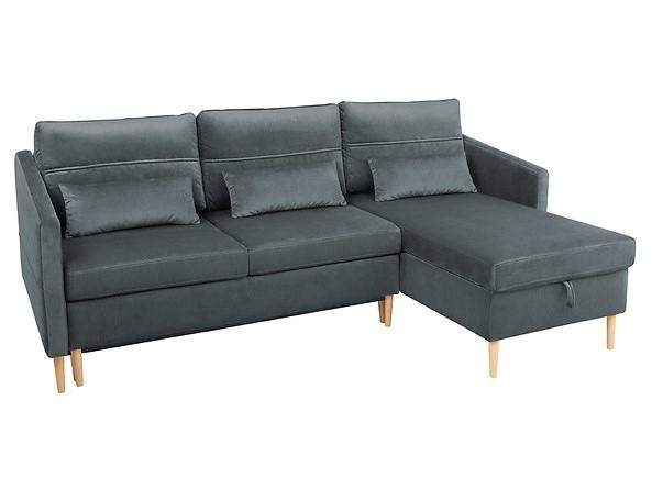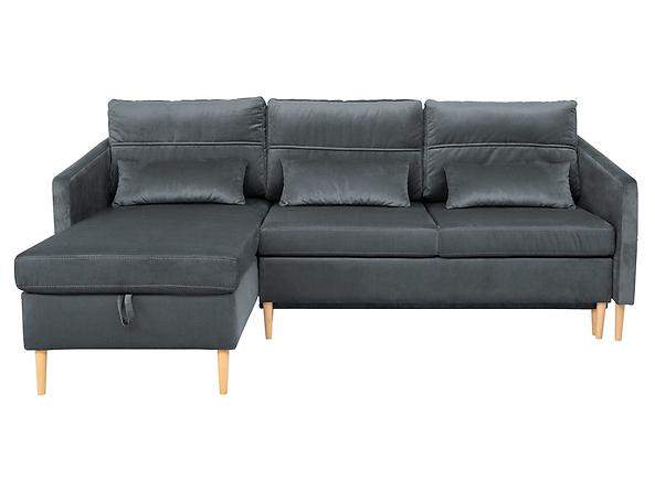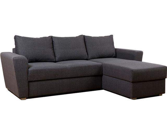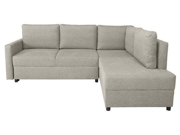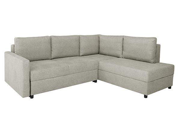 Preiswertes, kompaktes Ecksofa für kleine Räume; Schlaffunktion + Stauraum für Bettwäsche; KOMFORT: Bonellfederkern + Schaumstoff;