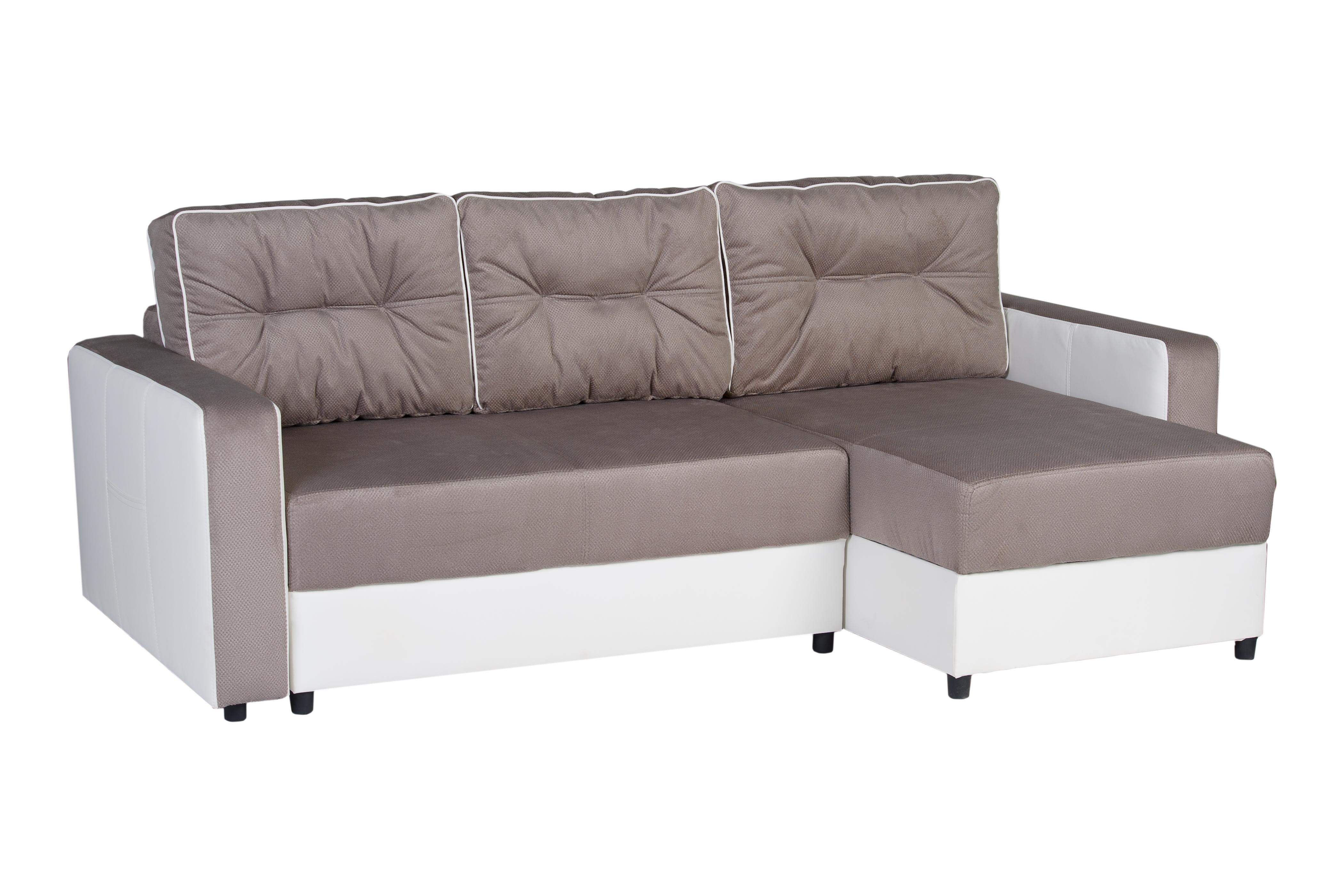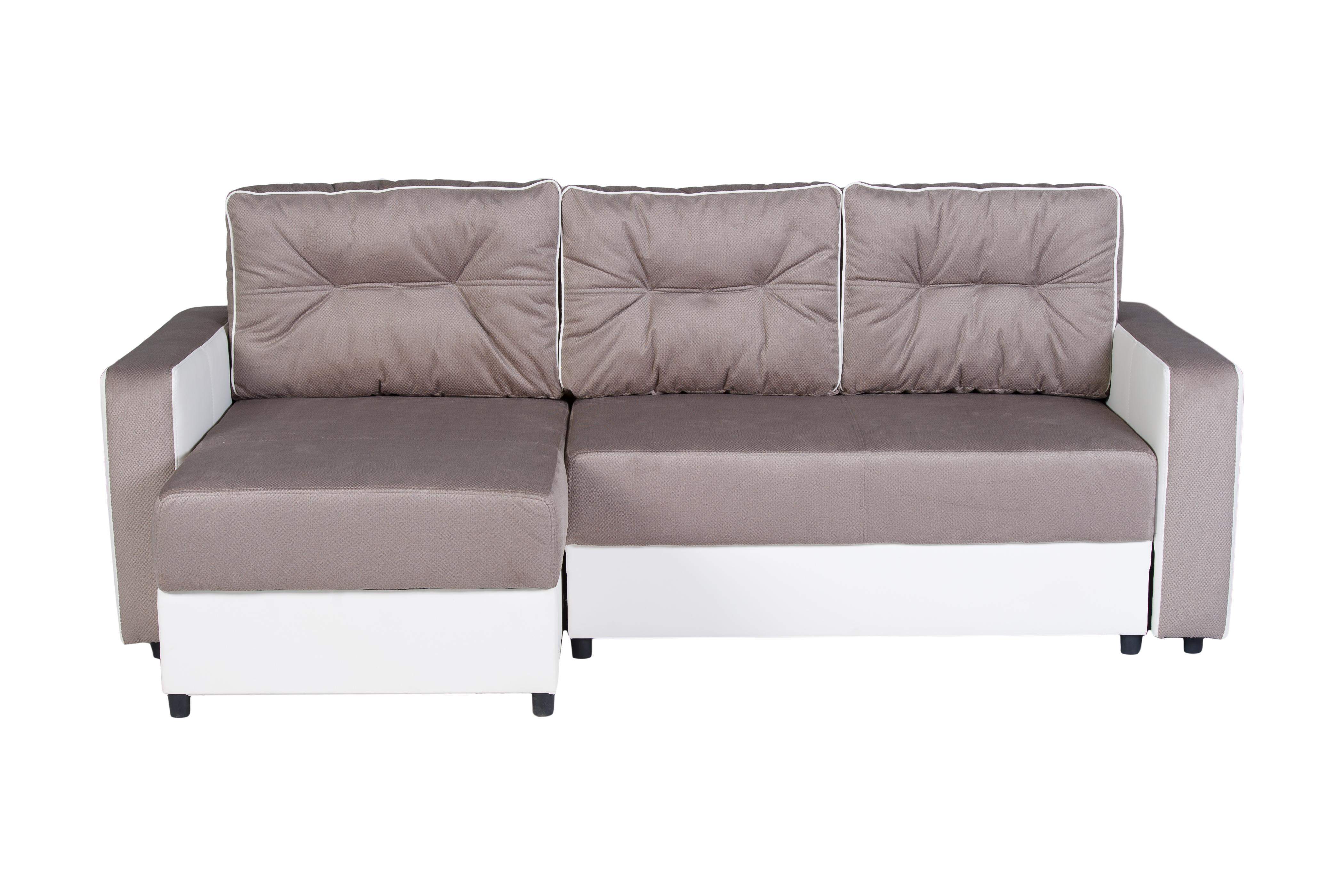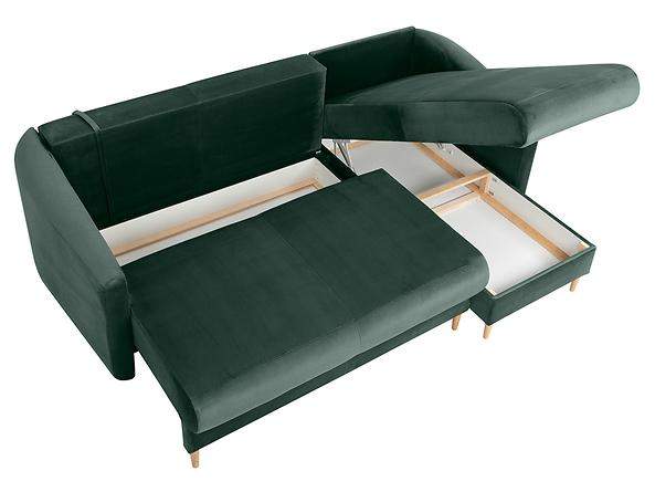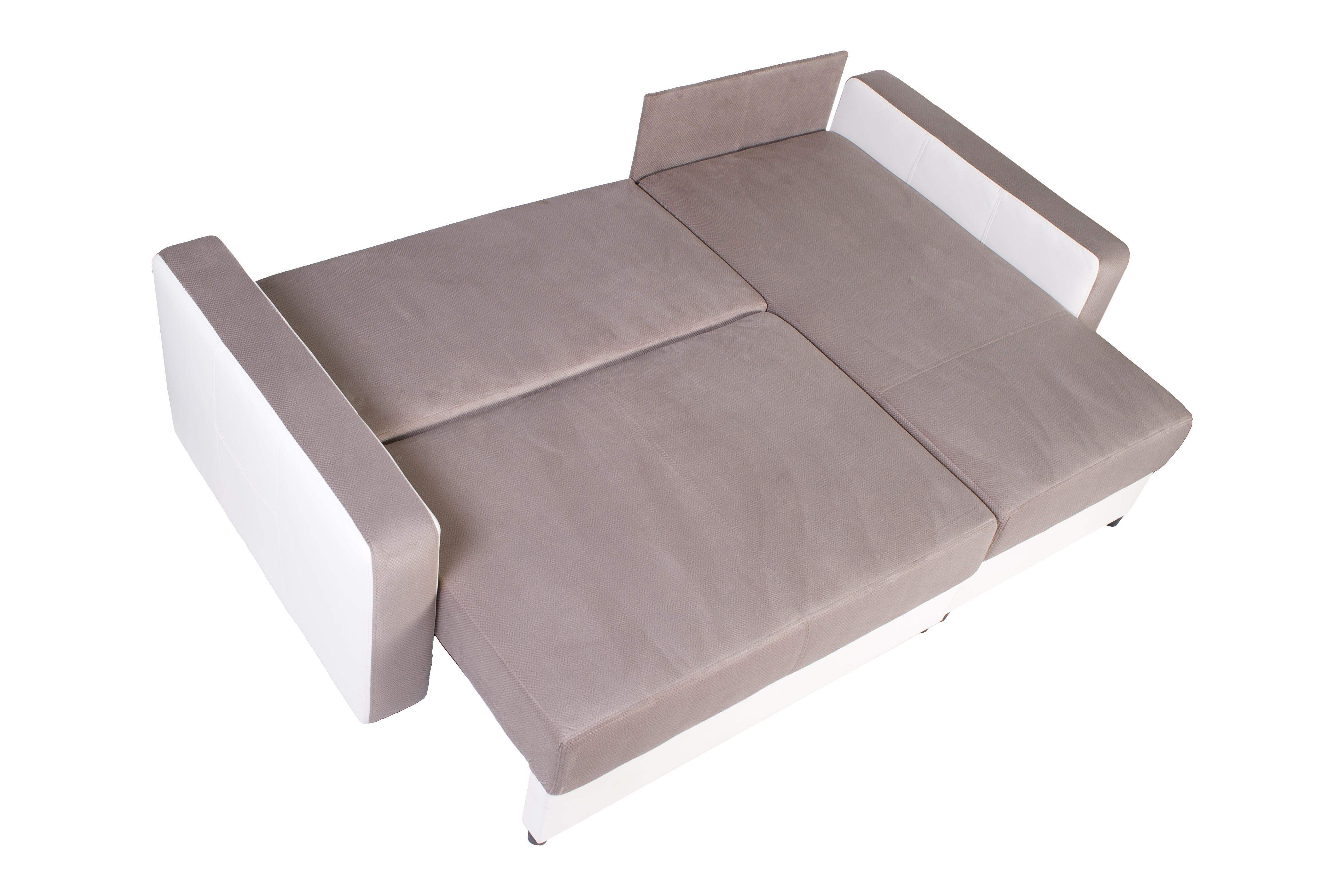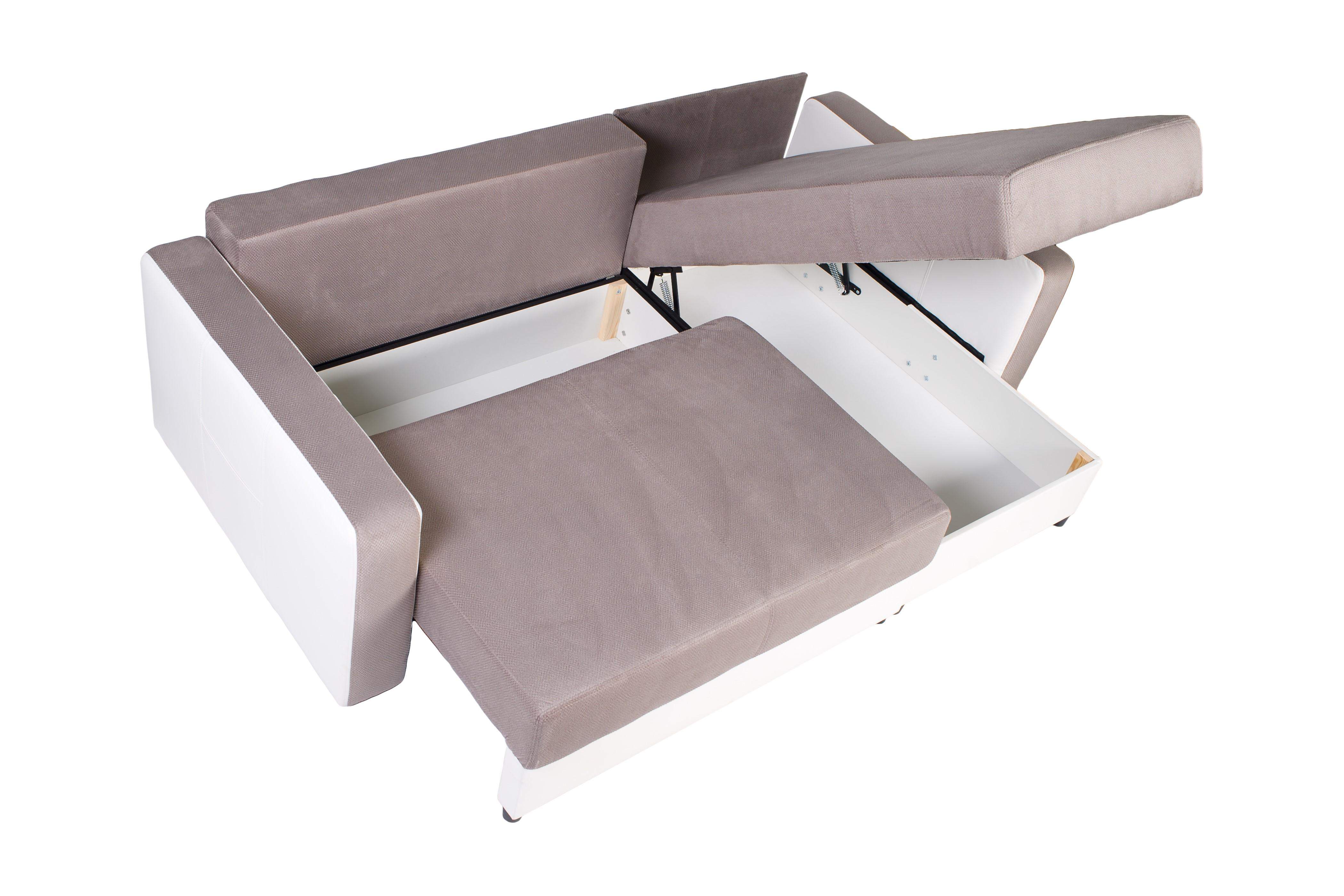 Kompaktes Ecksofa für kleine Räume; Schlaffunktion + zwei Bettenfächer; KOMFORT: Wellenfederung + Schaumstoff;