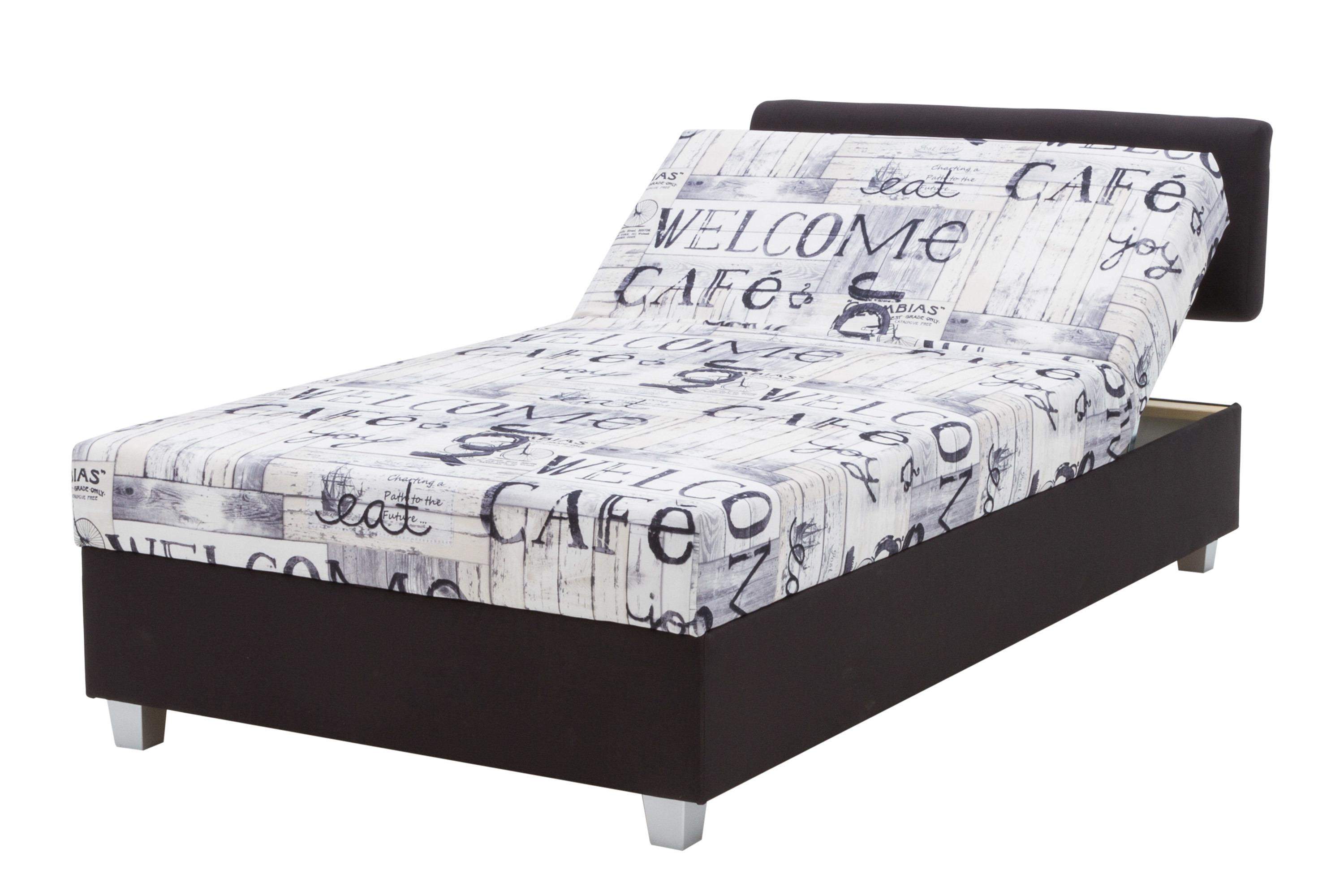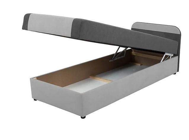 Jugendsofa mit gepolsterter Kopfstütze; Schlaffunktion + großer Stauraum für Bettwäsche; Doppelte Hebefunktion; KOMFORT: Bonellfederkern;