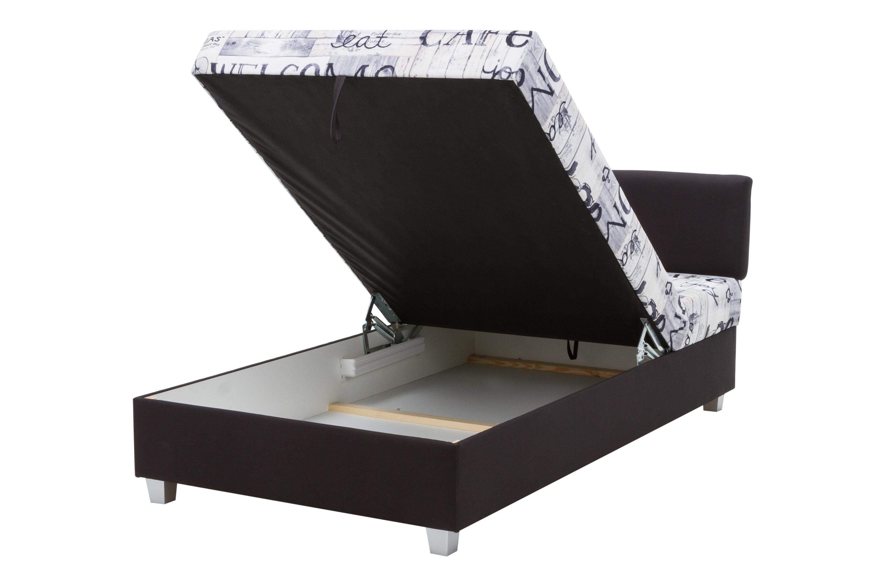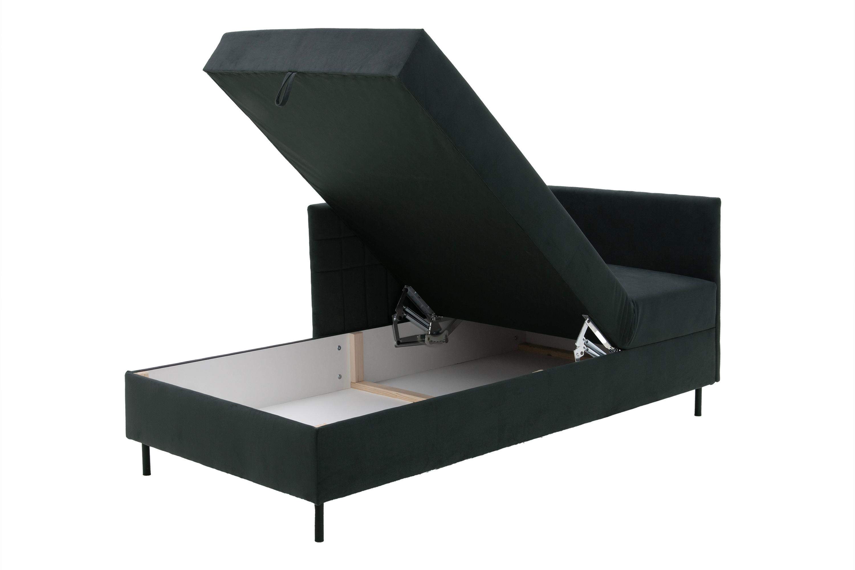 Jugendsofa mit gepolsterten Wänden; Schlaffunktion + großer Stauraum für Bettwäsche; Doppelte Hebefunktion; KOMFORT: Bonellfederkern;