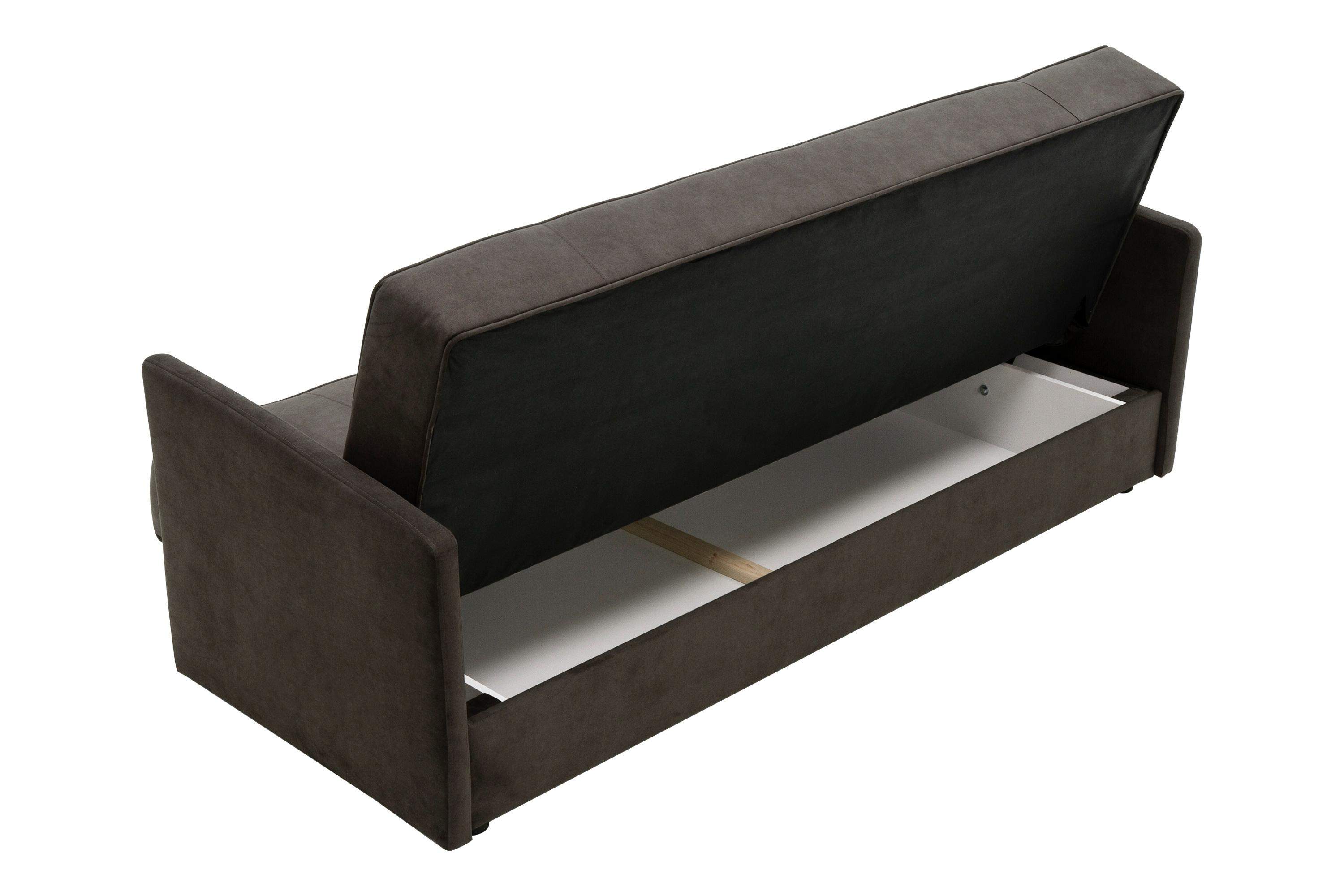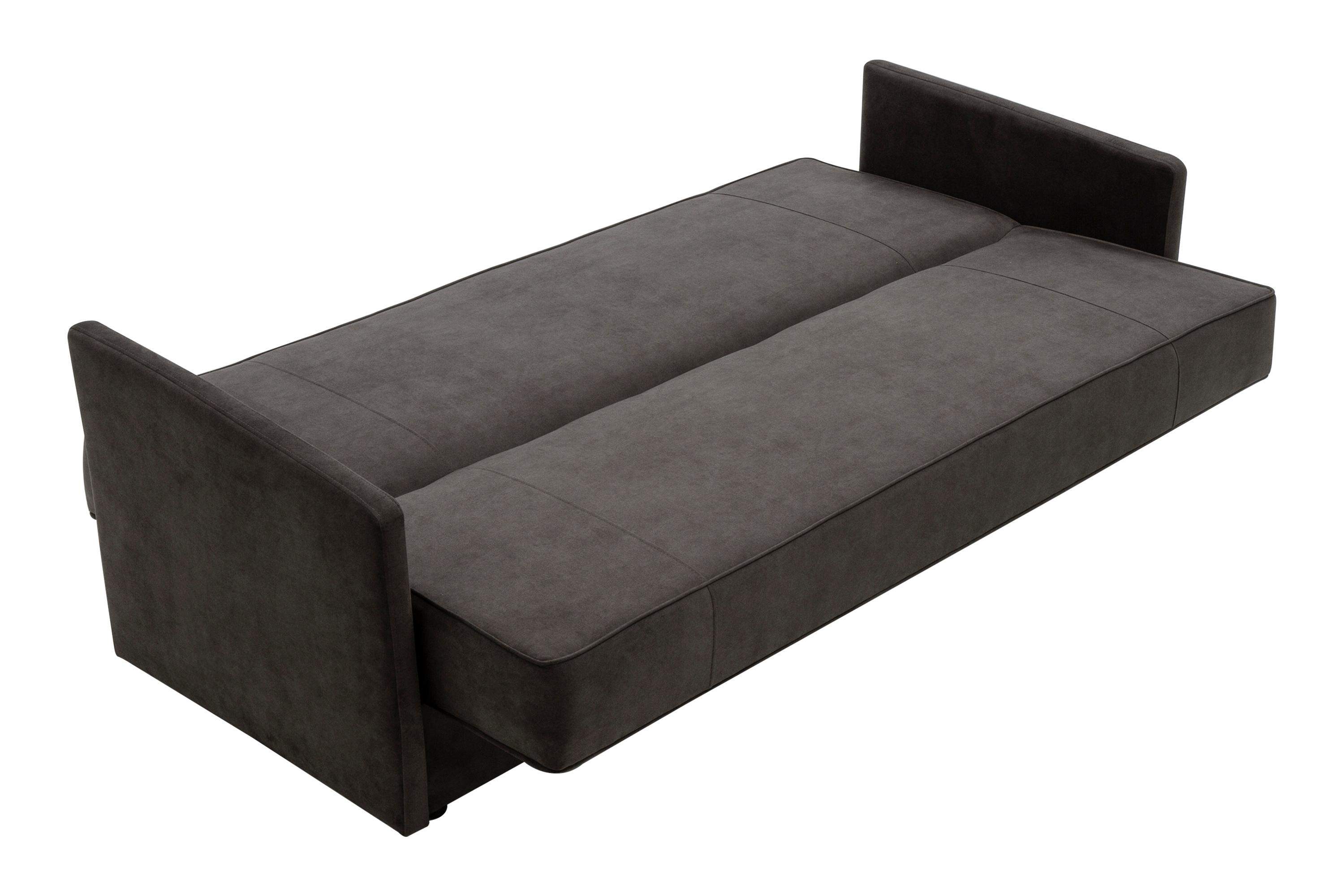 Schlichtes, elegantes Schlafsofa mit schmalen Armlehnen; Schlaffunktion + Aufbewahrung für Bettwäsche; KOMFORT: Bonellfederkern;