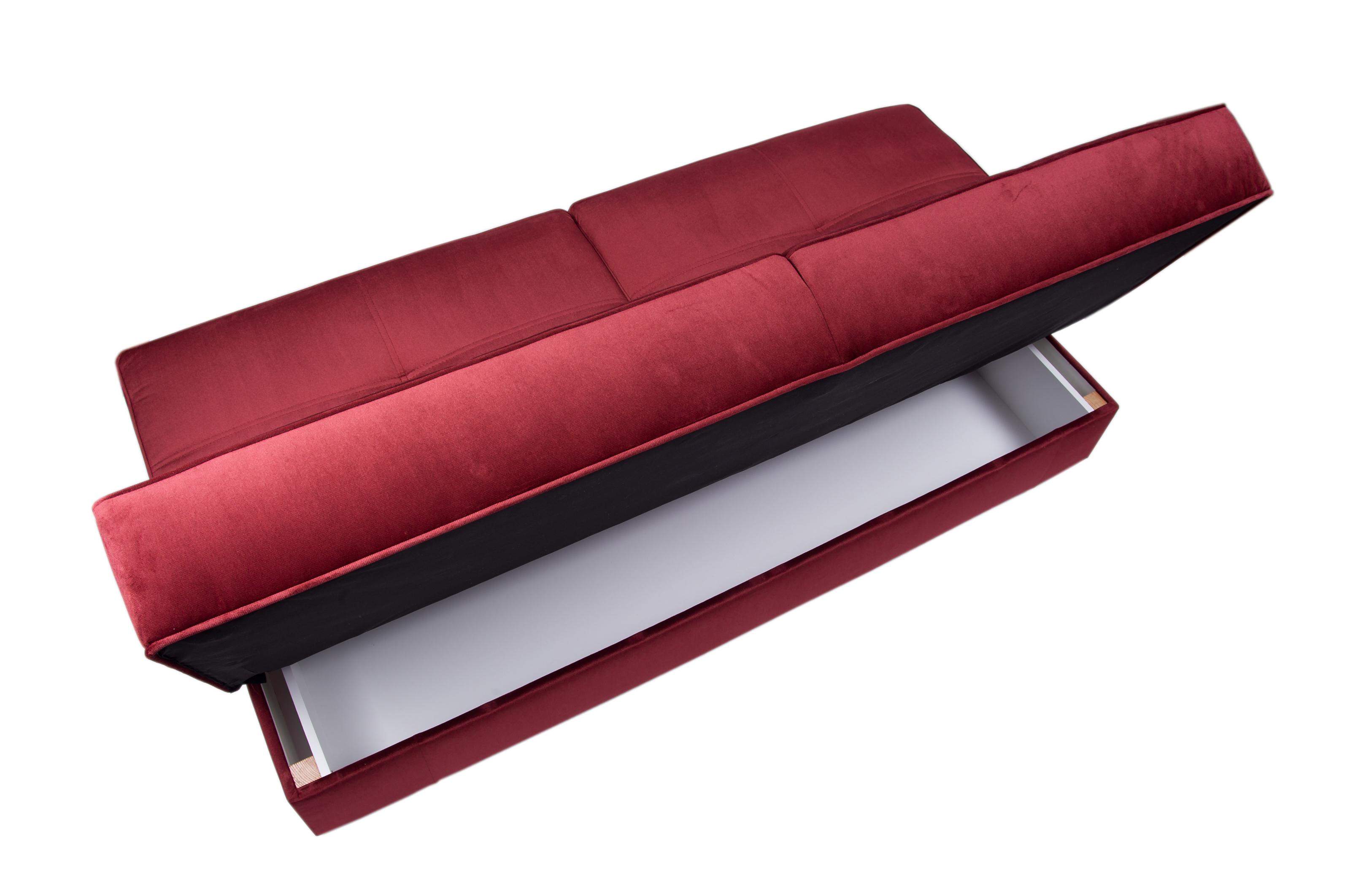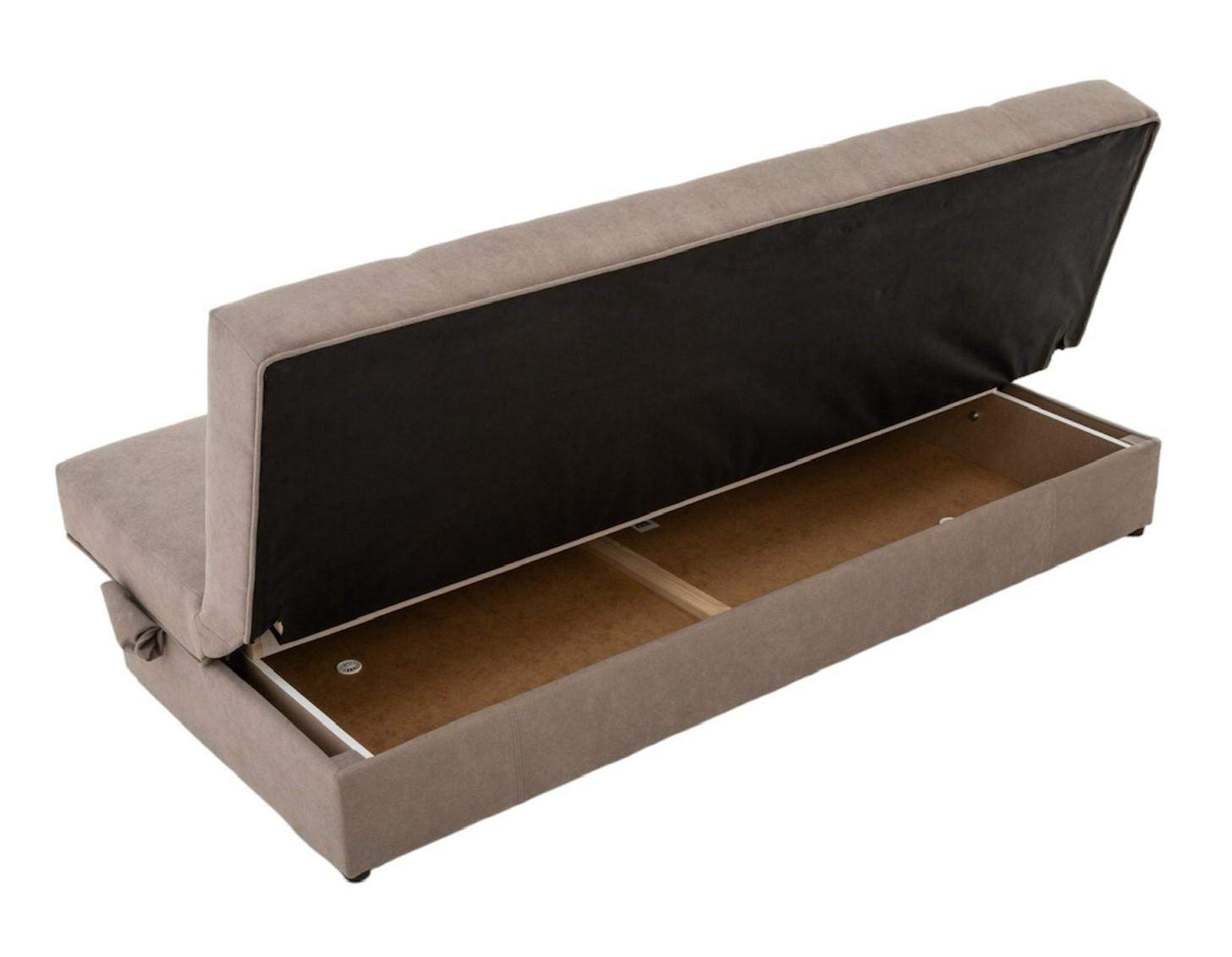 Kompaktes Schlafsofa mit markanter Paspelierung an der Unterkante von Sitzfläche und Rückenlehne; Schlaffunktion + Aufbewahrung für Bettwäsche; KOMFORT: Bonellfederkern;